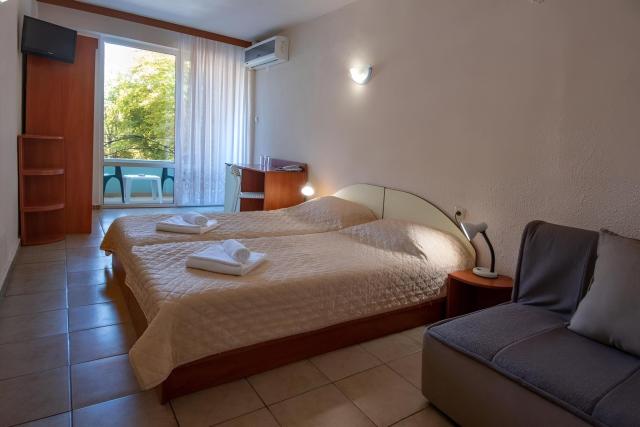 Menší rodinný hotel s priateľskou atmosférou sa nachádza v letovisku Kiten iba pár metrov od piesočnatej pláže. Hotel prešiel poslednou rekonštrukciou v roku 2020. Vhodný je najmä pre menej náročných klientov všetkých vekových kategórií, ktorí túžia stráviť dovolenku na pokojnom mieste v obklopení zeleňou. Centrum letoviska Kiten s obchodíkmi a možnosťami zábavy leží v dochádzkové vzdialenosti. |
