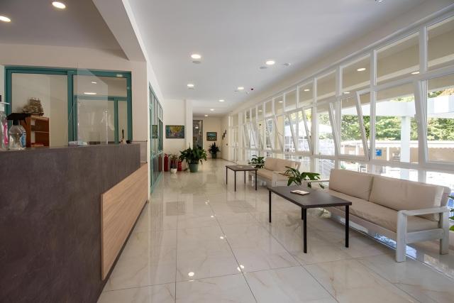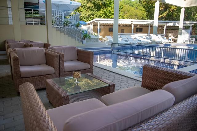 vstupná hala s recepciou, reštaurácia, bar, vonkajší bazén s oddelenou detskou časťou, terasa so slnečníkmi a ležadlami, trezor na recepcii, detské ihrisko |