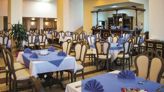 261 izieb, 6 poschodí, vstupná hala s recepciou, výťahy, 7 reštaurácií, z toho niekoľko à la carte, 10 barov, amfiteáter. V záhrade 5 bazénov, aquapark, terasa s lehátkami a slnečníkmi zadarmo.