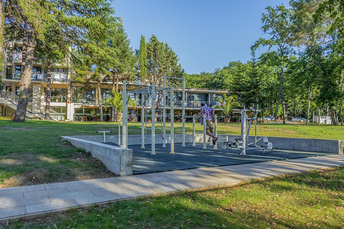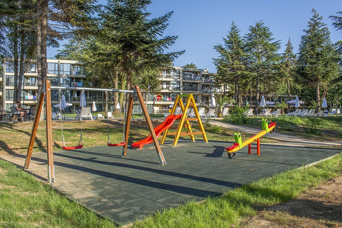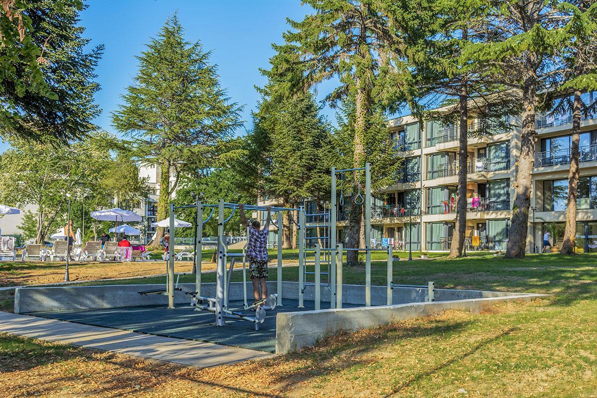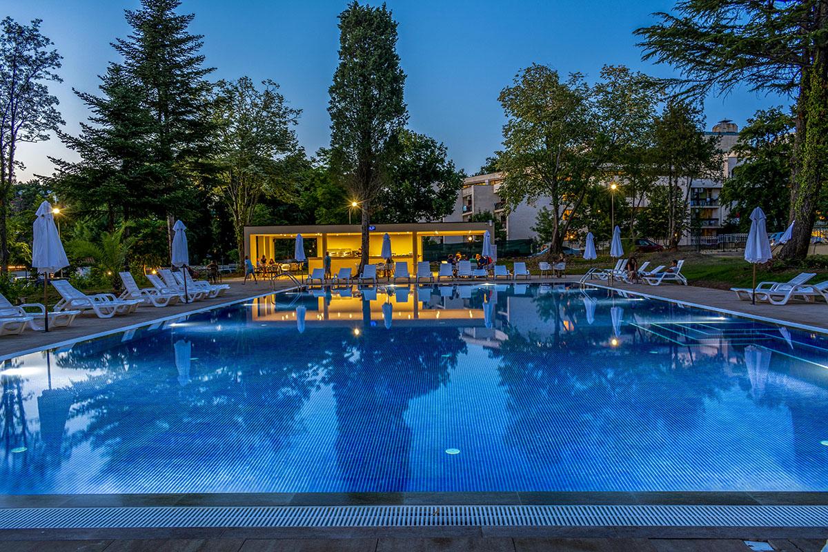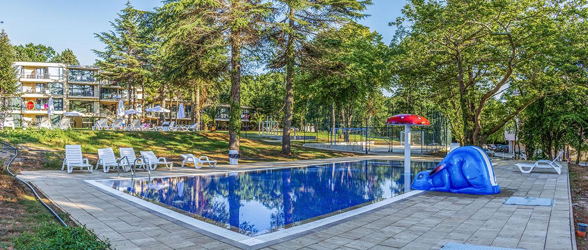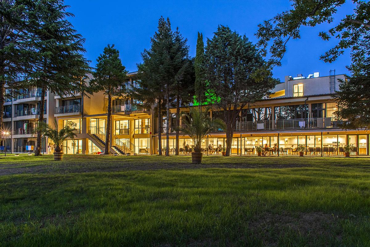 reštauráciami a barmi je vzdialené 550 m. Vybavenie: vstupná hala s nepretržitou recepciou, trezor za poplatok, hlavná reštaurácia, vonkajší bazén, detský bazén, bar pri bazéne, ležadlá a slnečníky pri bazéne zadarmo, detské ihrisko, detský klub, wifi pripojenie zadarmo, dve multifunkčné športoviská (futbal, tenis, volejbal, basketbal), fitness, stolný tenis, výťah, súkromné parkovisko za poplatok, vodné športy na pláži za poplatok. Ubytovanie: klimatizované dvojlôžkové izby s možnosťou až 2 prísteliek, kúpeľňa so sprchovacím kútom, WC, sušič na vlasy, TV s plochou obrazovkou, minibar, wifi, balkón s výhľadom na park/bazén, detská postieľka na vyžiadanie za poplatok. Stravovanie: hotel sa ponúka s ALL INCLUSIVE. Oficiálna kategória: **** Naše hodnotenie: Moderný hotel s vkusne zariadenými izbami je vhodný pre páry, rodiny s deťmi ale aj všetky vekové kategórie. Prostredie hotelového prírodného parku a jeho blízkosť k moru ponúkajú jedinečný a nezabudnuteľný letný zážitok. |