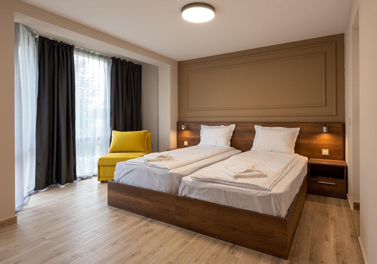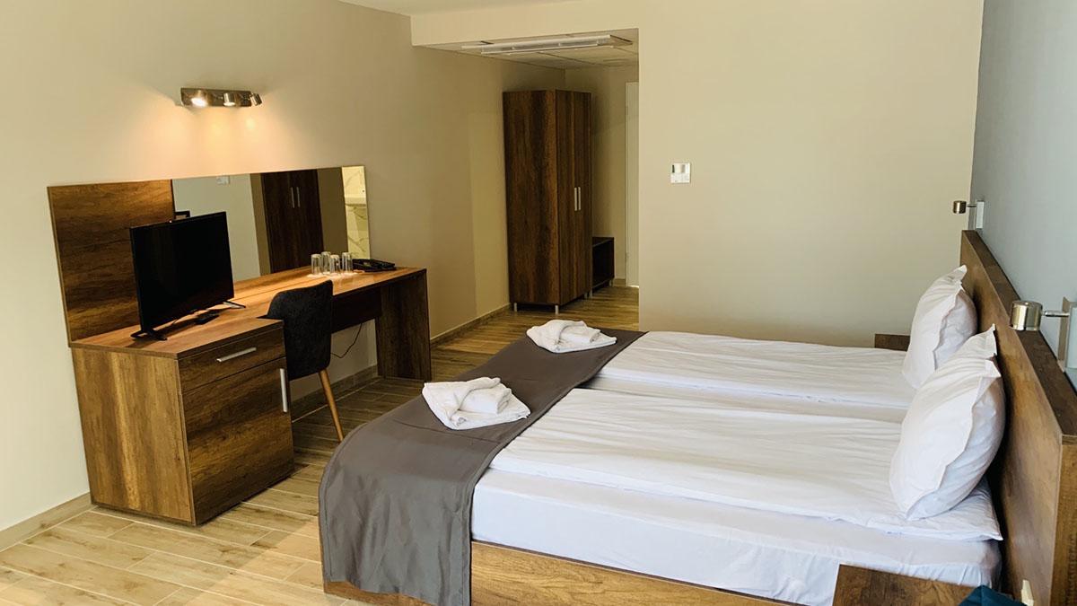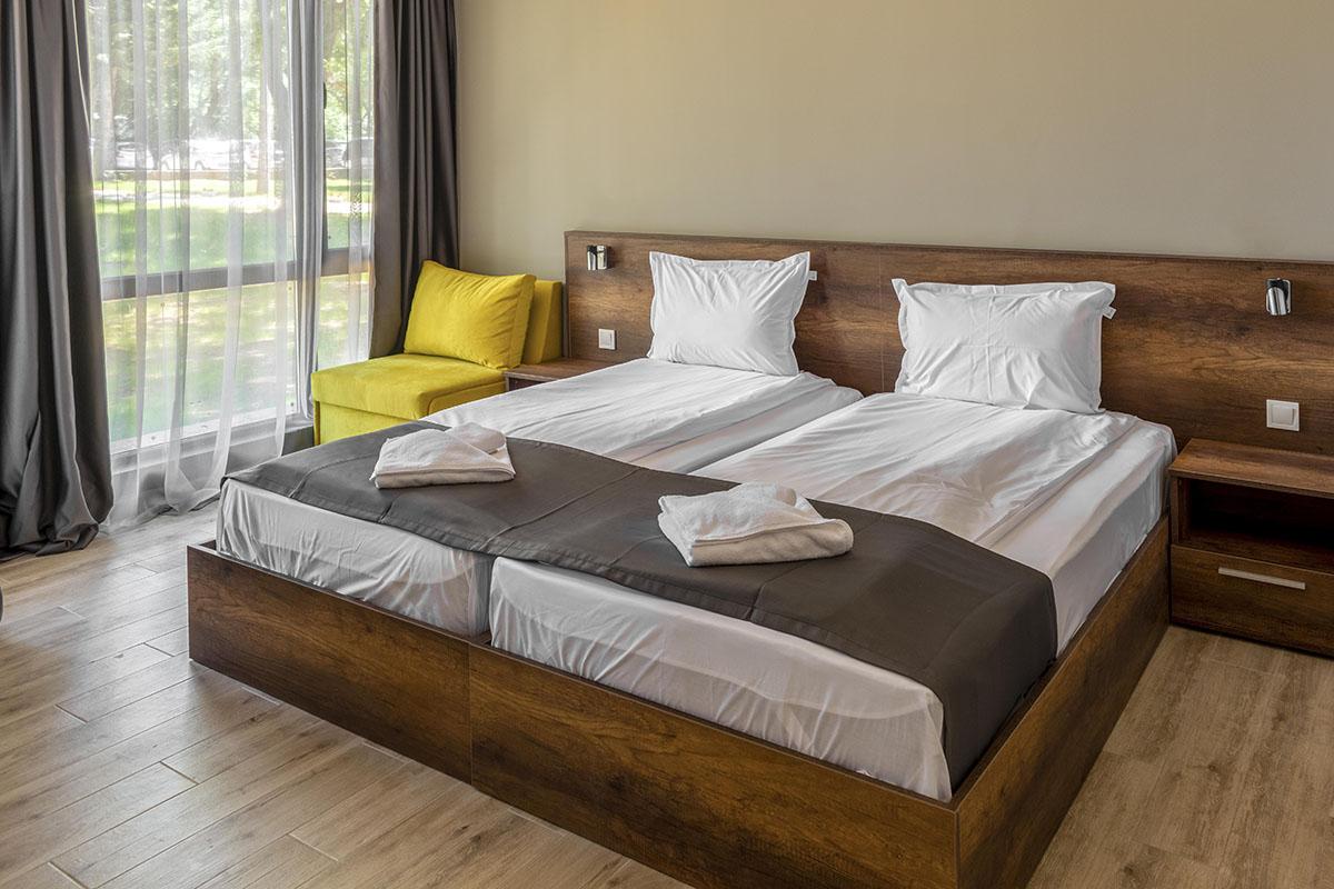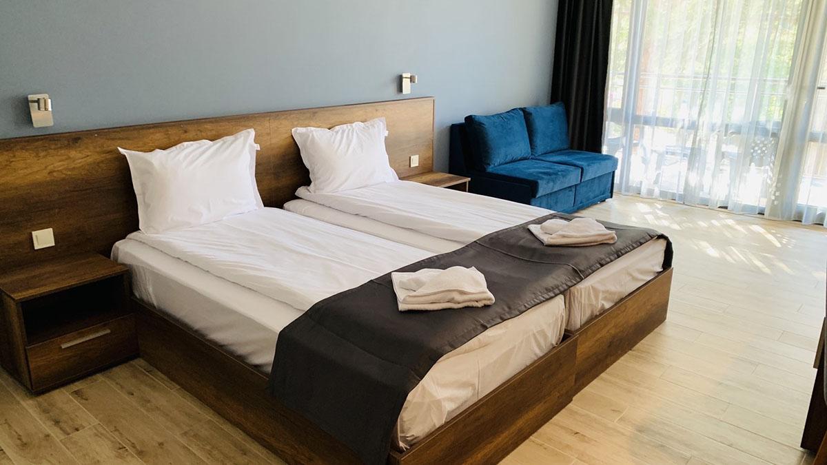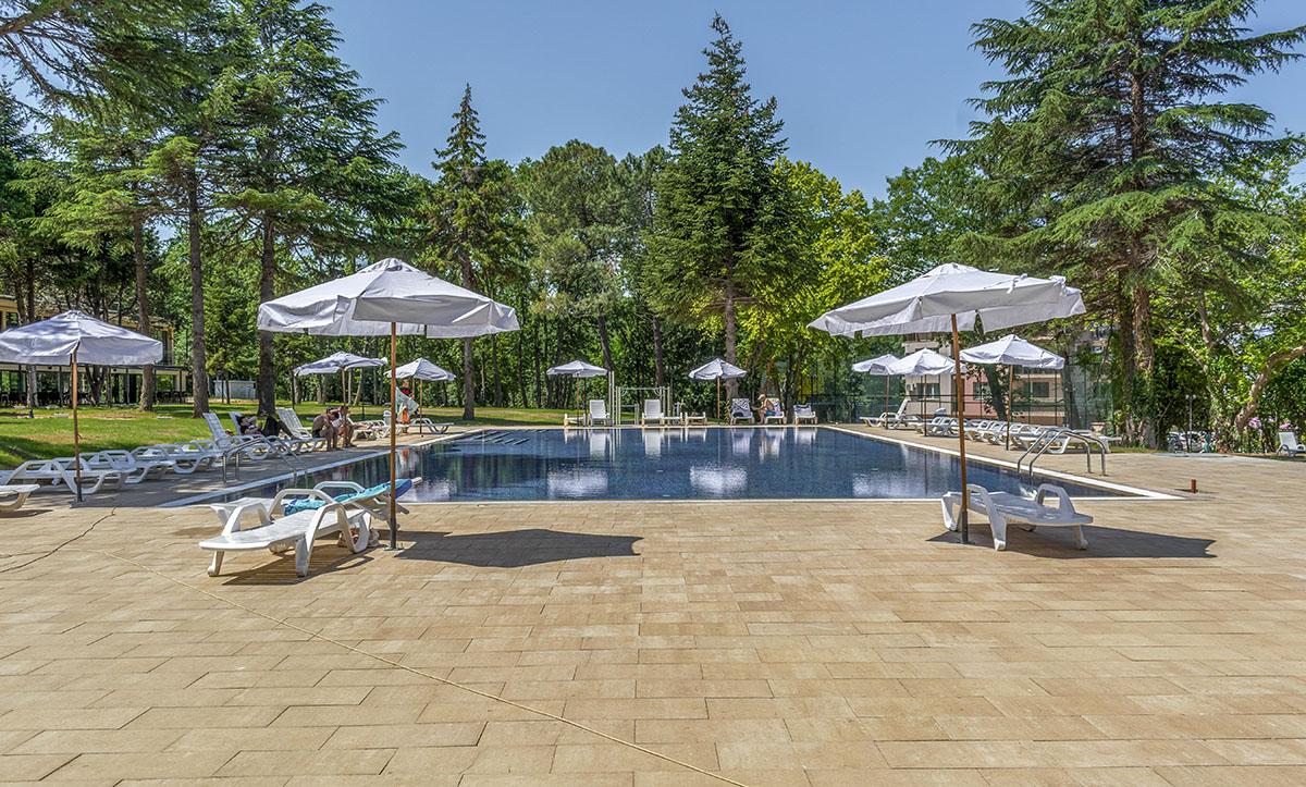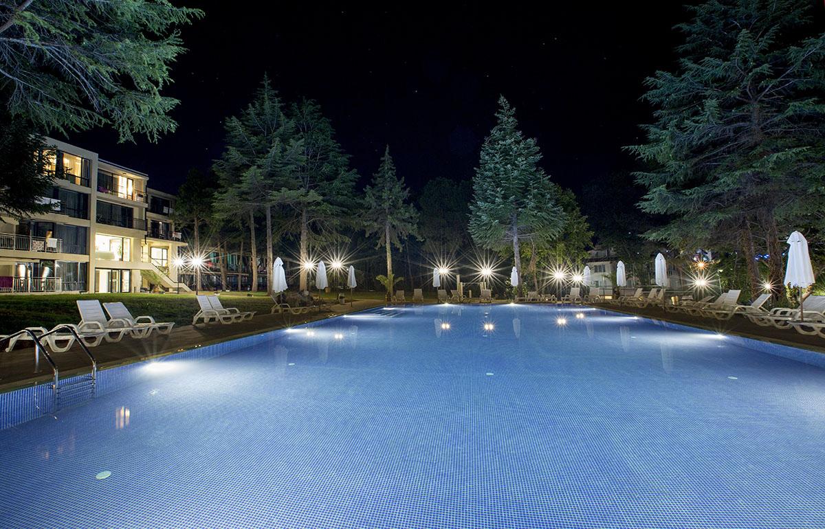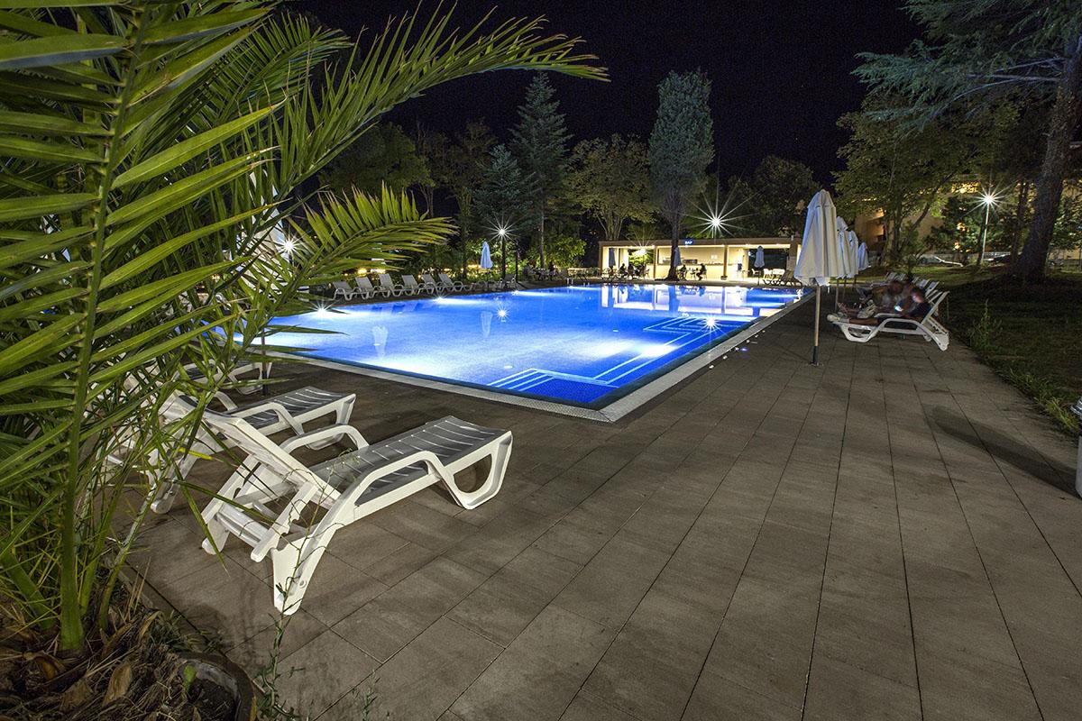 reštauráciami a barmi je vzdialené 550 m. Vybavenie: vstupná hala s nepretržitou recepciou, trezor za poplatok, hlavná reštaurácia, vonkajší bazén, detský bazén, bar pri bazéne, ležadlá a slnečníky pri bazéne zadarmo, detské ihrisko, detský klub, wifi pripojenie zadarmo, dve multifunkčné športoviská (futbal, tenis, volejbal, basketbal), fitness, stolný tenis, výťah, súkromné parkovisko za poplatok, vodné športy na pláži za poplatok. Ubytovanie: klimatizované dvojlôžkové izby s možnosťou až 2 prísteliek, kúpeľňa so sprchovacím kútom, WC, sušič na vlasy, TV s plochou obrazovkou, minibar, wifi, balkón s výhľadom na park/bazén, detská postieľka na vyžiadanie za poplatok. Stravovanie: hotel sa ponúka s ALL INCLUSIVE. Oficiálna kategória: **** Naše hodnotenie: Moderný hotel s vkusne zariadenými izbami je vhodný pre páry, rodiny s deťmi ale aj všetky vekové kategórie. Prostredie hotelového prírodného parku a jeho blízkosť k moru ponúkajú jedinečný a nezabudnuteľný letný zážitok. |