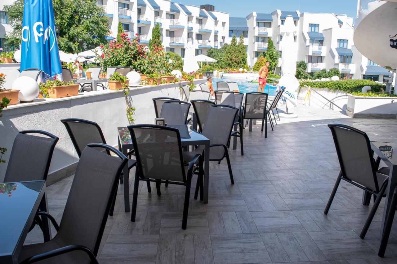 Vstupná hala s recepciou, trezor na recepcii, výťahy, lobby bar, reštaurácia, kaderníctvo. V záhrade bazén, bar pri bazéne, terasa s ležadlami a slnečníkmi zadarmo. |