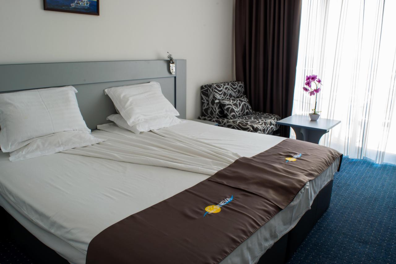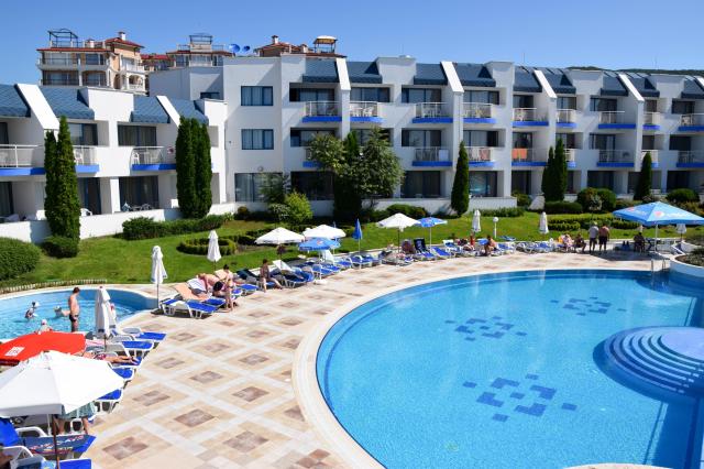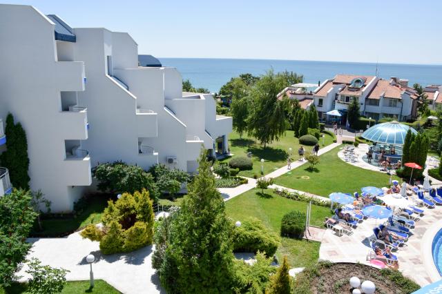 V pokojnej oblasti letoviska Sveti Vlas, kyvadlová doprava do centra mesta za poplatok, autobusová zastávka cca 400 m od hotela. Mesto Nessebar cca 10 km, rušné letovisko Slnečné pobrežie cca 4 km. Letisko Burgas 33 km, letisko Varna 101 km. |